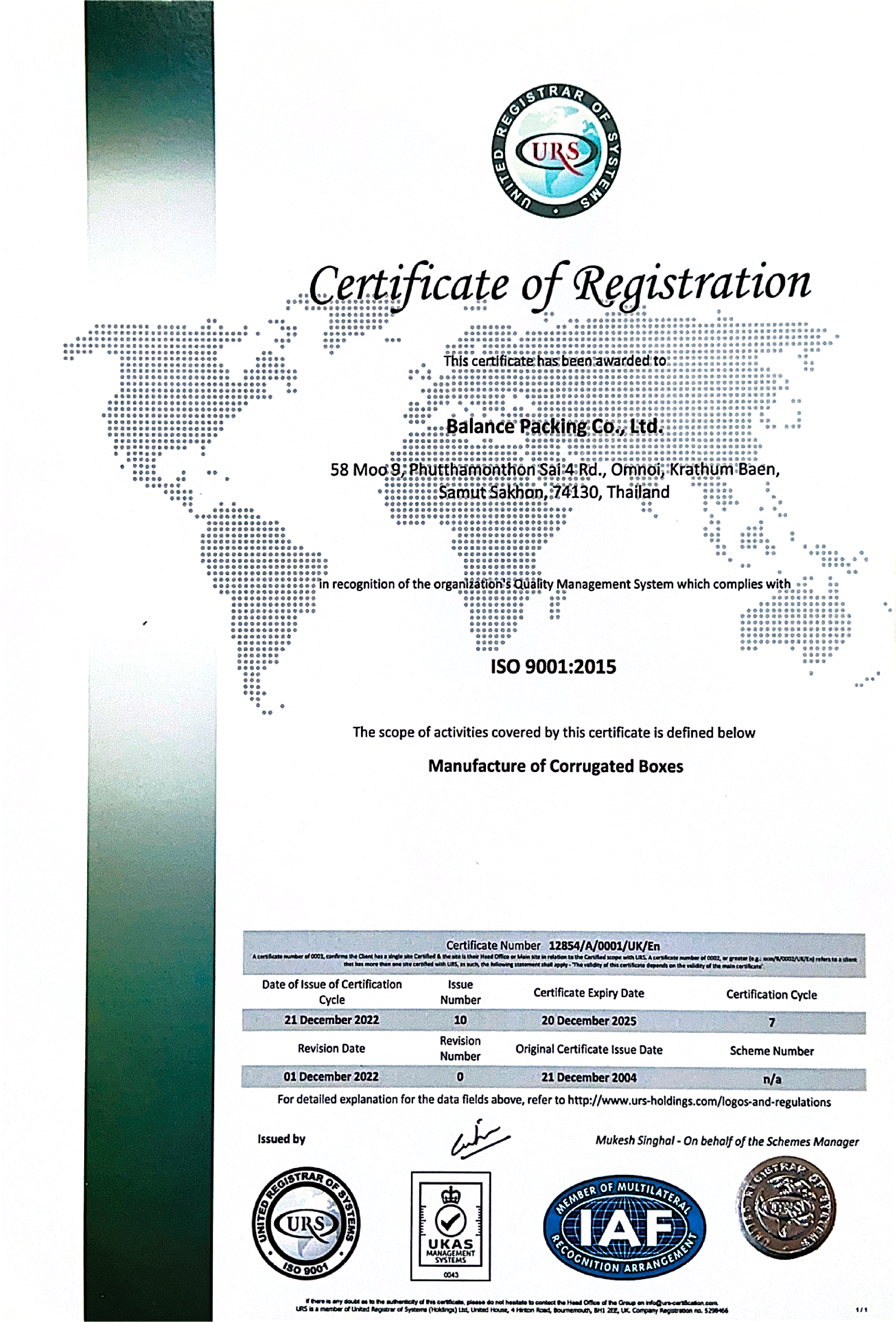 Balance Packing’s highest objective is to have quality and standards of goods and services universally. In order to maximize clients needs and environmental benefit, therefore Balance Packing has given attention and passed various standard auditions in every year to maintain and keep developing our quality and standards continuously.